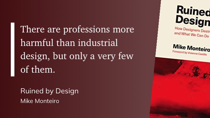 As Mike Monteiro writes, design is damaging to the world around us when done in particular ways. And that means MANY ways. We can do better.