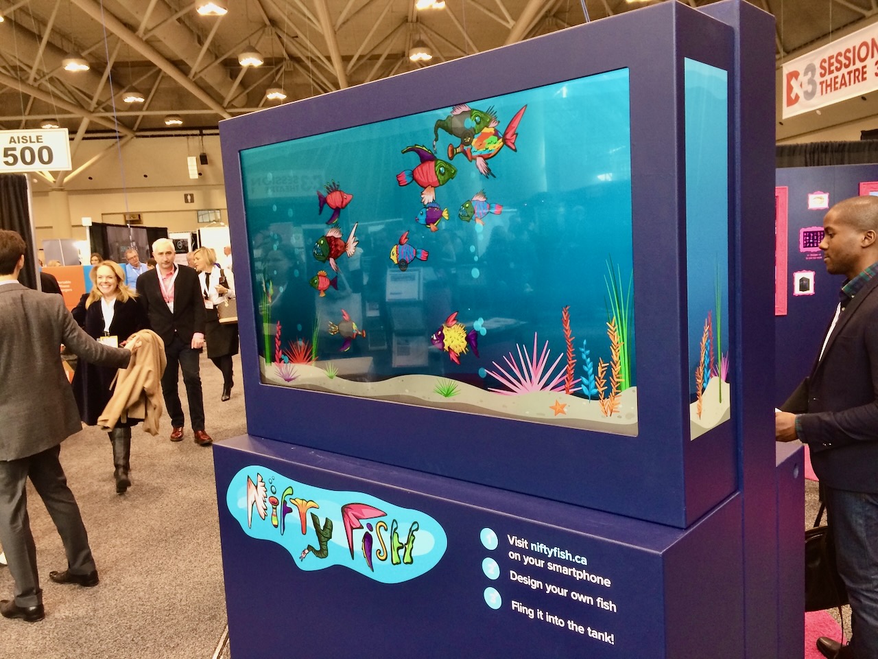 Lastly, critical design is also a domain of playfulness, such as the Nifty Fish developed by Art & Science, an interactive exhibit that allows people to design and ‘toss’ digital fish into a digital tank in the physical world (pictured above).